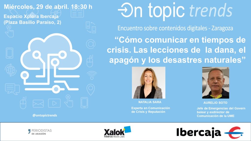 Próximo On Topic trends Inscripciones: https://www.ibercaja.es/xplora/agenda/como-comunicar-en-tiempos-de-crisis-las-lecciones-de-la-dana-el-apagon-y-los-desastres-naturales/